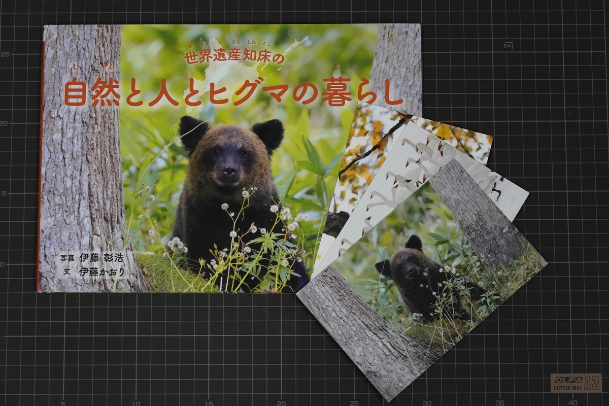 写真絵本「世界遺産知床の自然と人とヒグマの暮らし(著者サイン入り)」ポストカード3枚付き(送料込)
